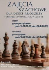 Wójt Gminy Jabłonka oraz Gminna Komisja Rozwiązywania Problemów Alkoholowych zapraszają na zajęcia szachowe, które będą się odbywać w środy i czwartki w Orawskim Centrum Kultury. Szczegóły na plakacie