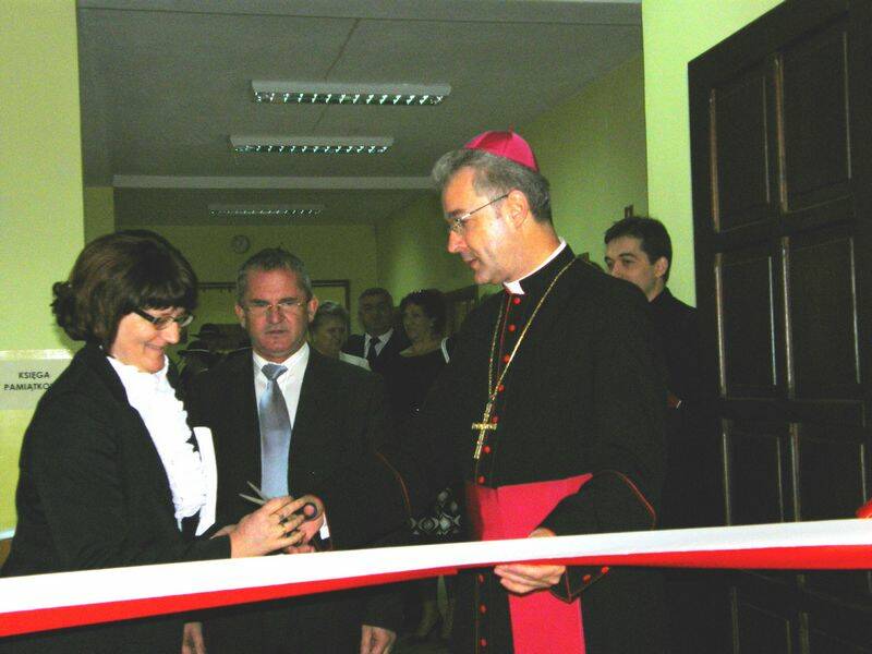 Uroczystego przecięcia wstęgi dokonali między innymi: Jego Ekscelencja ks Biskup Wiesław Lechowicz, posłowie Andrzej Gut Mostowy i Edward Siarka, przedstawiciel Powiatu Nowotarskiego Bogusław Waksmundzki, wójt Gminy Stanisław Gawęda i dyrektor Gimnazjum Wiktoria Sydoriak.