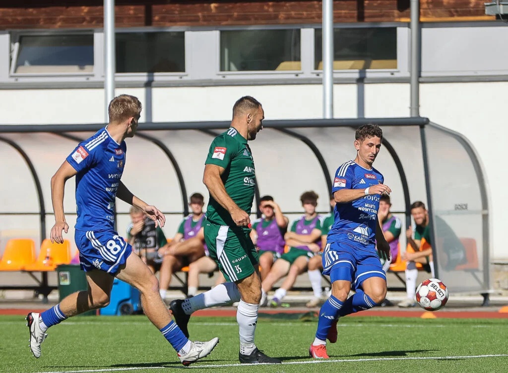 Od pierwszych minut gospodarze narzucili swój charakterystyczny styl – wysoki pressing, agresywne doskoki i próby szybkiego odbioru piłki na połowie rywala. To sprawiało Kaliszowi sporo problemów i szybko przynosiło podhalańskiej ekipie szanse. Już w 13. minucie efektownie rozegrany rzut rożny zakończył się strzałem Voszki, ale piłka odbiła się od obrońców i trafiła do Cielemęckiego, który z dogodnej pozycji uderzył obok bramki. Trzy minuty później ten sam zawodnik spróbował z dystansu – bramkarz przyjezdnych, Krakowiak, odbił futbolówkę przed siebie, jednak nikt z miejscowych nie zdołał tego wykorzystać.