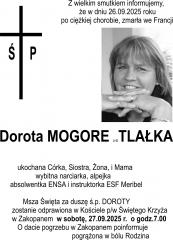 Dorota Tlałka-Mogore ma zostać pochowana w Zakopanem. Nie ustalono jeszcze daty pogrzebu.