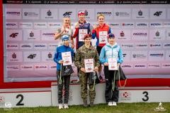 W biegu kobiet zwyciężyła Natalia Sidorowicz z AZS AWF Katowice. Jej czas 17:20,1 pozwolił jej wyprzedzić Annę Mąkę (BKS WP Kościelisko) o zaledwie 1,8 sekundy. O wyniku przesądziła szybkość na trasie, ponieważ Mąka strzelała bezbłędnie, a triumfatorka miała jedno pudło. Brąz wywalczyła Daria Gembicka (UKS Lider Katowice), finiszując już ponad minutę później. Poza podium znalazły się Anna Nędza-Kubiniec i Monika Hojnisz-Staręga, które straciły szanse na medal po błędach na strzelnicy.