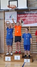 Bardzo dobrze walczyli również nasi pingpongiści w Małopolskim Turnieju Olimpiad Specjalnych 2025 w Słomnikach; tutaj ponownie medale w grupach dla singlistów: