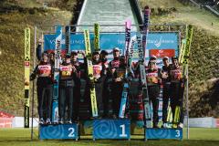 Na najniższym stopniu podium stanęli Norwegowie. Rzutem na taśmę, Anna Odine Stroem (124,5 m), Kristoffer Eriksen Sundal (132 m), Heidi Dyhre Traaserud (110 m) i Halvor Egner Granerud (128 m) wyprzedzili o 7,4 punktu czwartych Niemców.