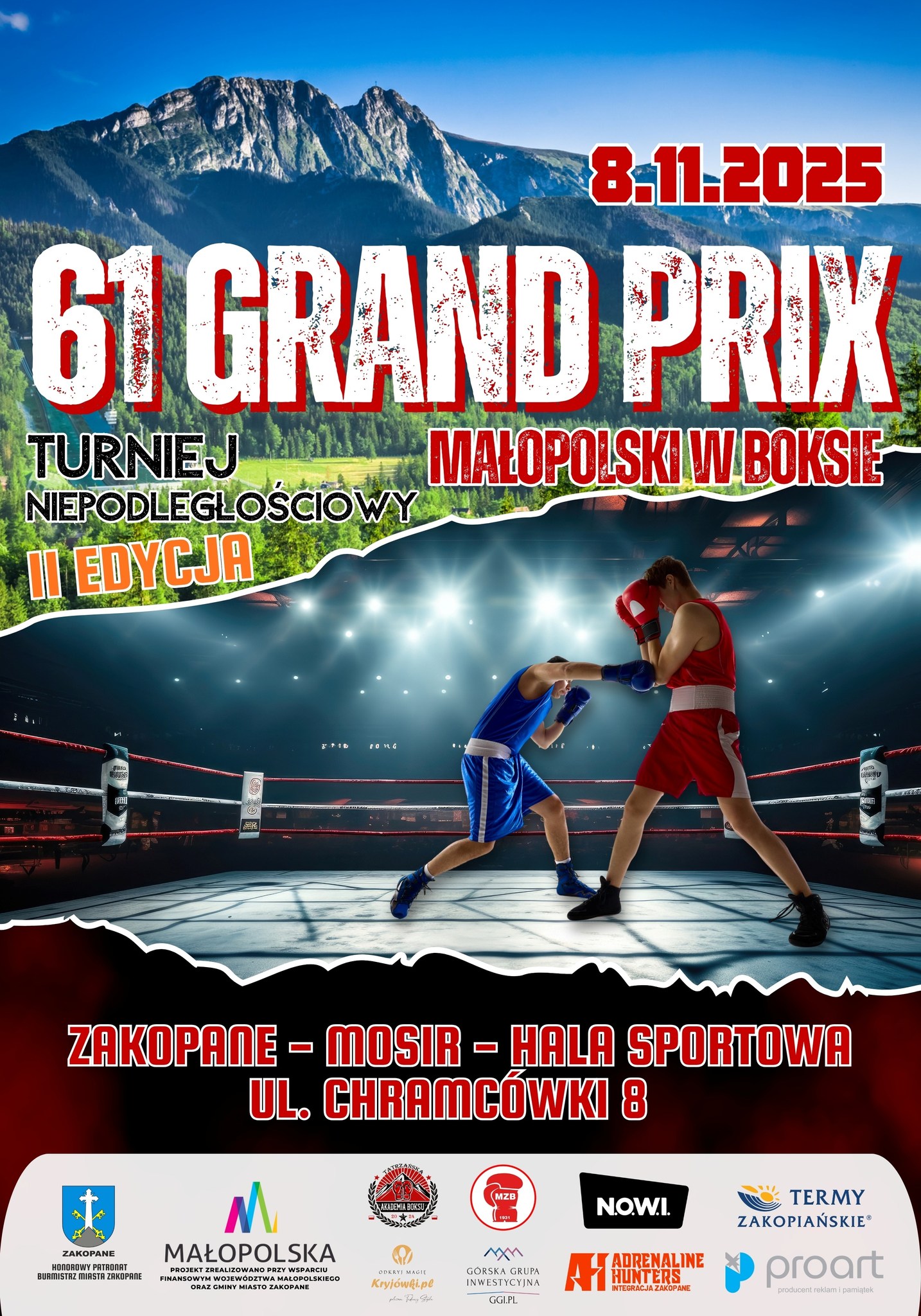 8 listopada br. od godz. 8 w hali sportowej przy ul Chramcówki odbędzie się 61. Grand Prix Małopolski w Boksie. Turniej Niepodległościowy – II edycja. Organizatorem rywalizacji jest Tatrzańska Akademia Boksu