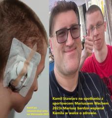 Dużego wsparcia w tym trudnym czasie udzielił mu również znany bokser Mariusz Wach, którego Kamil jest fanem.Mariusz Wach zakomunikował na swoich social mediach że Kamil juz po operacji rekonstrukcji ucha można odsłuchać pod tym linkiemhttps://www.facebook.com/reel/1180580483489733
