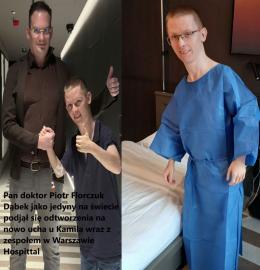 Kamil dodaje, że poleca szpital Hospittal na Ząbkowskiej oraz cały jego zespół, a też w szczególności wyjątkowego specjalistę – dr. Piotra Florczuka-Dąbka.Chce podziękować też innym osobą znanym między innymi Mariuszowi Wachowi, Anne Ganczarek Rał ,Rafałowi Jackiewiczowi,Sylwi Warmus Oksiuta i Jolancie Siwińskiej.Dziękuje tez ludziom ktorzy duzo mi pomagali.