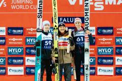 Nozomi Maruyama odniosła trzecie z rzędu zwycięstwo w zawodach Pucharu Świata pań. Liderka cyklu triumfowała w piątkowym konkursie na normalnej skoczni Lugnet (HS95) w Falun, oddając skoki na odległość 94 m oraz 91 m. Życiowe wyniki odnotowały reprezentantki Polski. Dziesiąte miejsce zajęła Anna Twardosz, a 14 była Pola Bełtowska.