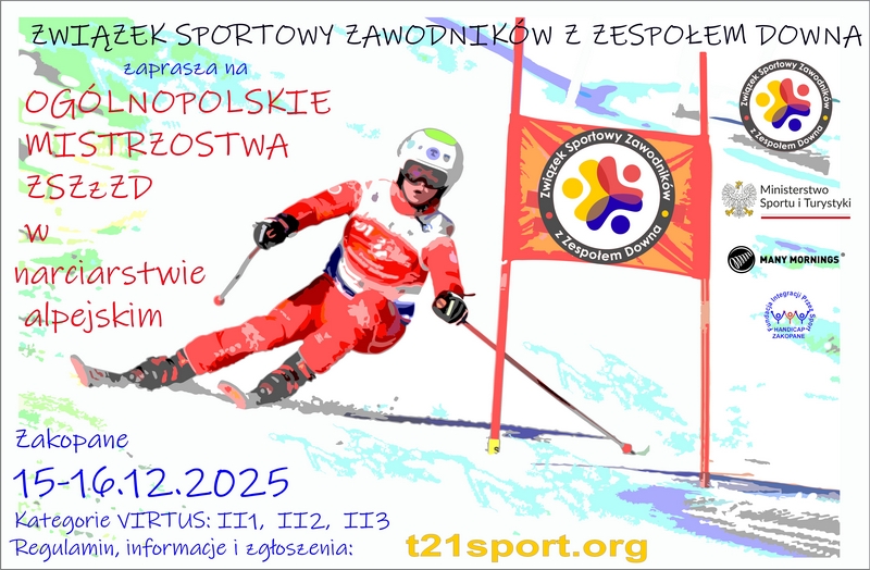 Związek Sportowy Zawodników z Zespołem Downa zaprasza alpejczyków z niepełnosprawnością intelektualną oraz kibiców, na I Ogólnopolskie Mistrzostwa ZSZZD w narciarstwie alpejskim. To będą pierwsze ogólnopolskie zawody w narciarstwie alpejskim organizowane według. międzynarodowych standardów klasyfikacji sportowców z niepełnosprawnością intelektualną. W slalomie i gigancie, planowanych na 15 i 16 grudnia 2025 na stoku Grapa Ski w Białce, zawodnicy wystartują w kategoriach: Niepełnosprawność Intelektualna (II1), Zespół Downa (II2) oraz Spektrum Autyzmu (II3). Oprócz rywalizacji indywidualnej prowadzona będzie klasyfikacja drużynowa klubów o Puchar ZSZZD.