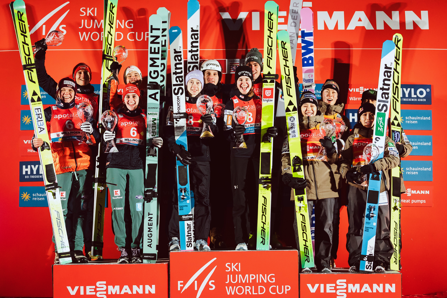 Na czele Pucharu Narodów pań znajdują się Japonki (3476 pkt.) przed Słowenkami (2995 pkt.) i Niemkami (2920 pkt.). Polki z wynikiem 272 punktów są sklasyfikowane na jedenastej pozycji.