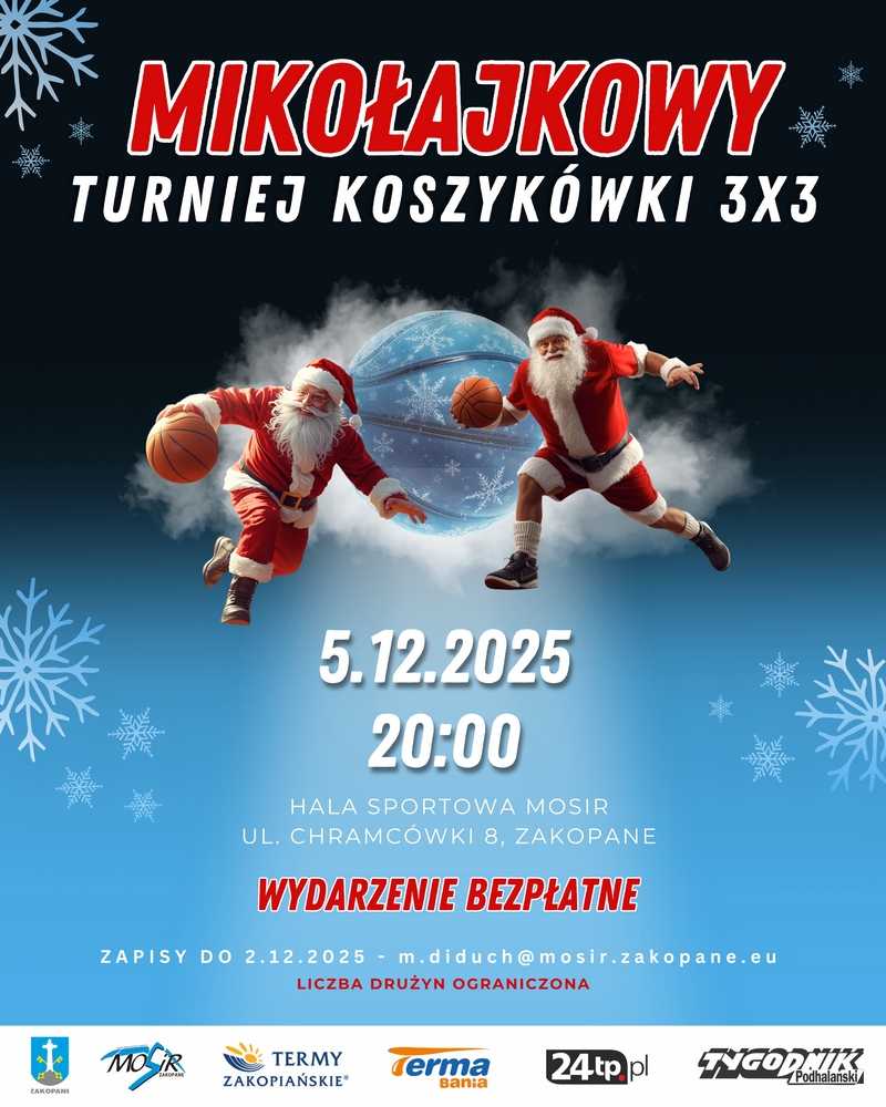 Już w najbliższy piątek tj. 5.12.2025 ZAPRASZAMY na Turniej "TRÓJEK" w ramach Zakopiańskich MIKOŁAJEK